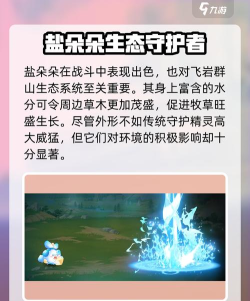 盐朵朵不仅在战斗中表现出色,它们的存在还与飞岩群山的生态系统紧密相连。据传言,盐朵朵身上充足的水分对周围的环境有着重要影响。在它们飞翔和停留时,周围的草木都会因此变得更加茂盛,这让飞岩群山的牧草始终保持着旺盛的生长状态。虽然它们的外形不像传统意义上的守护精灵那样高大威猛,但它们对环境的贡献却不可小觑。