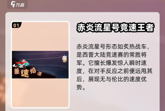 以上就是西普大陆手游赤炎流星号介绍的内容了。赤炎流星号的竞速能力和超高的物理攻击力让它成为赛道上的常胜将军。在短程直线赛道上,赤炎流星号几乎是无敌的存在。而其技能组合的设计,更是为玩家提供了多样化的战斗策略。如果你是一个追求速度与激情的玩家,赤炎流星号无疑是你的最佳选择。快来西普大陆亲自感受这位速度之王的魅力吧!