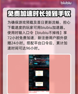 对于担心下载速度的玩家,可借助biubiu加速器提升效率,使用指定加速器并输入口令【biubiu不掉线】,可免费获取72小时加速时长,新注册还会额外加赠24小时。若搭配平台口令,累计加速时间可达96小时,确保游戏预载及首日更新流畅完成。