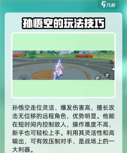 玩家玩孙悟空在实际单挑的时候,应该以拉扯和骗盾为主,直接用2A接上3A,只要敌人开盾我们就直接闪避,接上强化平A,有宗师之力的情况下,可以用强化闪现在敌人的周围不断转圈给压力,敌人只要松盾就接上强化平A,团战的时候推荐大家后手使用主动技进场,打敌人一个出其不意。