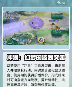 “冲浪”这个招式可以让幻梦乘上波浪进行突击,击退接触到的敌人并使其无法动弹,招式命中时也可以累计额外强化普攻的进度,招式使用时自己可以获得护盾效果,招式结束时能向指定方向跳跃。