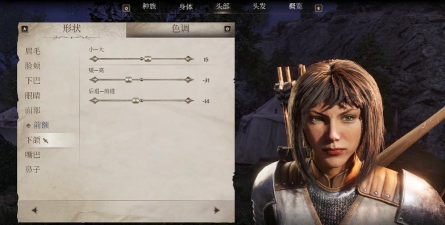 脸颊可以调整的内收一点,-12的数字即可,稍微瘦削看着更冷酷,颧骨位置不用调整,但是可以调的突出一点,在11就差不多了,大小调整到3。下巴调整的微翘,突出数值达到21就很明显了。其他使用预设数值,发型改成蓬松中分,就很帅气了。