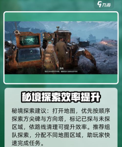 秘境探索建议内容包括:①打开地图,找到方尖碑和方向塔,推荐大家按顺序从下到上探索。②标记已探索和未探索的区域,按照路线清理,这样可以有效的提高探索效率。③建议组队探索,分配地图区域,可以帮助玩家更快速完成探索。