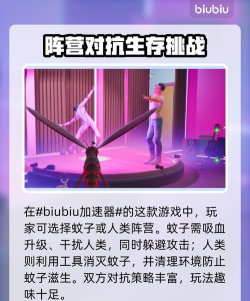 其中游戏场景设定在人类住宅内,包含厨房、客厅、卧室等都是其中之一,大家可互动的物品也是很丰富的,像餐具、家具、电器等,更是能主动制造堆满脏盘子或厕所堵塞等恶作剧的行为,蚊子视角下,还可去探索人类生活的微观世界,比如躲在窗帘后、潜伏在桌角等都是可以的,在体验起来的趣味性上还是很不错的,不过网络卡顿会导致各位的操作指令不畅,那么这个时候去选用biubiu来帮自己就很重要了,其中新用户首次登录更是能顺利领取到24h的加速时长哦。