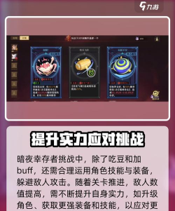 虽然暗夜幸存者挑战的时候,主要就是吃豆和加buff,但在面对敌人时,各位还是要有一定的战斗策略,比如合理利用角色的技能和装备,同时注意躲避敌人的攻击等也是很重要的,并且随着关卡的不断推进,敌人的数值会提高的,因此大家还需要不断提升自身的实力,才能顺利完成挑战,到时候如果觉得难打,可以通过升级角色、获取更强大的装备和技能等方式来提升自身的战斗能力哦。