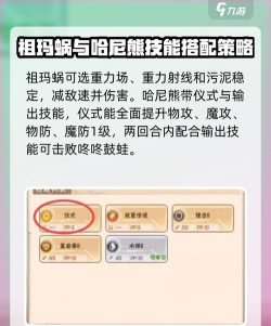 祖玛蜗技能选重力场、重力射线和污泥稳定减少敌人的速度并给予伤害,哈尼熊带仪式和其他输出技能,仪式这个技能属性非常逆天,无论是物攻、魔攻、物防以及魔防都能帮助玩家全面提升1级,有这技能在提升两个回合就能配合上其他输出技能将咚咚鼓蛙击败。