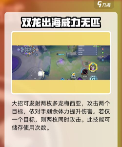 大招技能可以发射两只多龙梅西亚,对于两个敌方目标攻击,依照对手剩余的体力造成的伤害会逐渐提升,如果攻击范围内只有一个目标,那么两枚会同时攻击者一个对手,该招式能进行使用次数的储存。