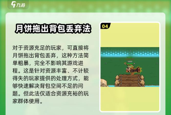 该方法就是直接给月饼拖出背包丢弃,这方法的话适用于资源够多、无所谓的玩家,这类玩家就可以直接丢,对其来说丢掉是一点影响都没有的,这就是第二种处理的方法了。