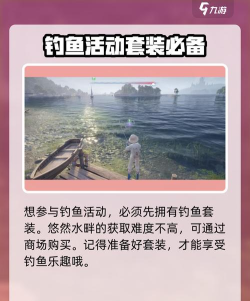不过各位得注意啊,没有钓鱼套装可视不行的,所以想要去参与该钓鱼活动,那么必须得先把此套装给拿到手中,当然了,悠然水畔的获取难度不是很高,通过商场就能进行购买。