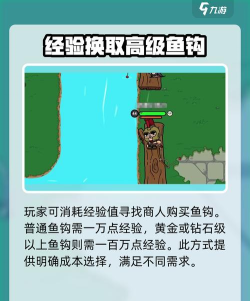 之后就能通过钓鱼快速刷到满级了,这就是新鱼钩的获取了,简单点来说就是花钱去买,当然如果不愿意去花钱买的话,那大家还可以选择另外一些鱼钩,这些鱼钩可以通过完成任务获得。