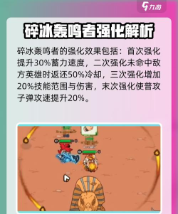 碎冰轰鸣者还可以进行强化,第一个强化会提升30%的蓄力速度,第二个能在技能没命中敌方英雄的时候,返还50%的技能冷却,第三个可以让技能的范围和伤害提升20%,最后一个可以让普攻的子弹攻速提升20%。