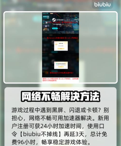 我在下载游戏时遇到闪退卡顿还有延迟等现象,那就需要考虑可能是网络问题。网络问题就会影响到下载的速度,建议直接关注以上的链接。在下载完成之后就可以起到加速的作用,而且现在新用户还会有一个24小时的免费礼包。兑换码【biubiu001】属于通用礼包,可以额外的延长3天。结合两种方法,最高就可以免费96小时。