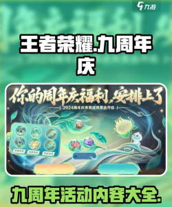 以上就是王者荣耀九周年活动有哪些的全部内容介绍了,在看完上文的介绍后,大家也清楚本次的九周年活动的具体奖励内容了吧,搞清楚后大家就可以等待活动上线了。