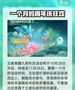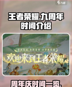 王者荣耀不知不觉已经陪伴玩家九年了,近期也即将迎来它的九周年庆典,要知道官方每年都会为玩家带来诸多活动和福利,今年自然也不会例外,有很多小伙伴之前没参与周年庆,不知道王者荣耀九周年是几月几号,那么为了解开大家的疑惑,下面就来介绍下时间和活动内容,感兴趣的小伙伴不要错过。