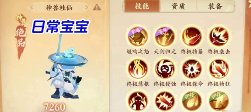 接下来是独属于蛙灵的宠物专属技能——蛙鸣之怒,该招式使用后,可以让特殊主动技的伤害得到10%的增强效果,技能触发的概率也会提升5%,主要的效果就是让技能的输出效果得到进一步的增强,同时额外效果的概率得到显著的提升。