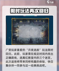 其次就是非常受到大家喜欢的一个玩法进行了返场,“月夜逃脱”玩法限时开启,相信之前体验过该玩法的小伙伴都知道这个多么的有趣,之前的月夜逃脱的规则比较简单,就是需要再限定的时间之内将正确的道路找出来,走出红教堂当中的三个迷宫。