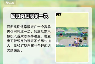 好了,以上便是宝可梦大集结回归奖励的全部介绍了,小伙伴们在看问了上述的说明后,对于此也有个全新的认识了吧,回归奖励本身就是为了让一些流失的朋友再次进入时,能够更快的上手更上整体的节奏,所以朋友们到时候可一定不能错过。