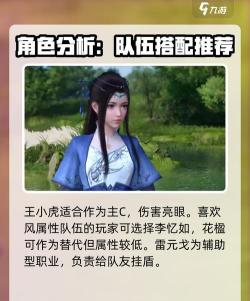 之后是第二个队伍,该队伍是由王小虎、李忆如和沈欺霜组成的,该阵容中王小虎是核心角色,他和李忆如拥有羁绊,该羁绊会让他在汇聚虎啸之力的时候,进入到虎啸生风状态,该状态下他的全属性会得到提升,风元素的伤害也会提升,提升过后做为前排站场角色的他,站场能力会变的更强。