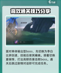 作为一个单体输出类型怪物,大家可切换成李白与他对决。这样便能比拼谁的剑速更快,用完技能之后,boss会处于瘫痪状态。这时你再继续乘胜追击,再切换成夏侯惇继续打出高额伤害,便能一套带走这个boss。带走之后继续前进就能通过关卡并完成任务,跳过剧情对话后就能结束。