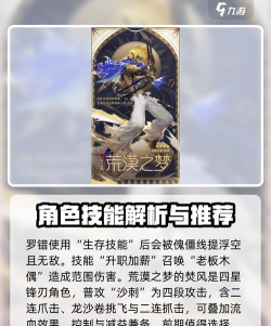 加班之梦罗错虽然只是一个三星的梦灵,星级不高,但是性价比比较高,比较推荐新人朋友使用他作为前期的开荒过渡角色,相对来说会比较顺利。普通攻击”工作分配”,有必要的职场规则,就是合理的让同事背锅,技能使用后,他会透支螺丝对敌人进行两段远程攻击,最后一段会召唤出一个“同事木偶”,利用木偶对敌人造成伤害,木偶的伤害会受到生存技能的等级影响。