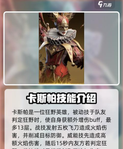 卡斯帕也是狂野英雄,他的被动技可以在己方队友被判定狂野的时候,让自身获得一层额外buff状态20秒,该状态会让伤害增加13%,最多可以叠加到13层,且荒诞戏法状态无法被移除;他的战技会对敌方目标发射总共五枚飞刀,每一枚都会造成75%攻击的火焰伤害,此外自身每拥有一层荒诞戏法状态,本次技能就能无敌目标1%的防御;