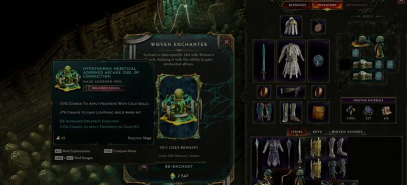 新增“神像附魔台”及“编织者神像样式”,支持更灵活的词缀定制。神像栏位需通过支线任务解锁,尺寸多样(1x1至4x1),属性与职业绑定。