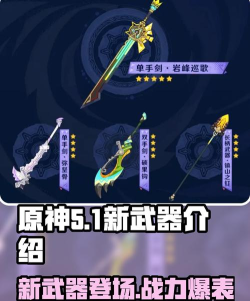 以上就是对原神5.1新武器怎么样的简单介绍,这四款新武器还是蛮强势的,新角色专武可以作为辅助用也可以作为主C用,其他3把紫武器也都有适合发挥的角色,大家可以适当抽取培养。