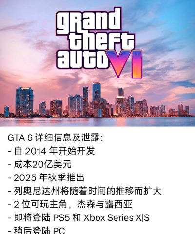 R星的大制作可是不少的,这款游戏已经有那么多代了,每次新版本推出都能斩获大量人气。最新一代6甚至不需要怎么宣传,只放出来宣传图以及预告视频,就能够迅速点击量过亿。等了这么久,GTA6最新发售日期爆料信息一出来,不少玩家都沸腾了,大伙就跟着小编一起来看看吧。