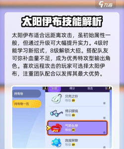 太阳伊布(光伊布)是宝可梦中大集结中实装的远程输出宝可梦,属于特攻型,游戏中玩家需要选择技能然后搭配合适的持有物道具。那么宝可梦大集结光伊布带什么持有物呢?本期就带来宝可梦大集结太阳伊布持有物推荐,方便大家参考,当然实战的时候可以根据敌人情况灵活选择。