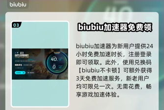 首先掉帧问题也有可能与电脑配置有关。当开启高画质进行团战时,电脑性能不足便容易导致掉帧。此刻比较推荐大家尝试降低游戏画质,或者提升电脑配置,以确保帧率稳定。另外网络问题也是导致掉帧的常见原因。挑战的过程中,如果网络不稳定,高延迟和掉帧现象便会频繁出现,甚至导致角色卡在原地无法移动。针对这一问题,大家可以使用上方这款加速器进行网络优化。新用户完成注册流程后,将直接解锁24小时的免费加速服务体验。为回馈广大玩家的支持,无论是新注册用户还是资深老用户,均可凭借专属兑换码【biubiu不卡顿】额外兑换3天的免费加速时长,让游戏体验更加流畅无阻。