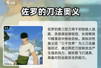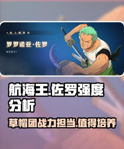 航海王壮志雄心佐罗的实力情况,小伙伴们是不是有初步的认知了呢,佐罗这个剑客的输出能力还是想到到位的,所以喜欢他的小伙伴可以放心入手,练度上来后在对战中能发挥强大的作用,是非常值得大家去培养的角色。
