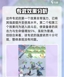 最后是第三个效果,这第三个效果可以让装备者在进入战斗后,攻击力和生命值增加5%,这效果和第二个效果无差都一样,这就是这件专武的效果了,就效果来看光前面第一个效果就已经将这专武抬到了一个相当高的高度了,在结合后面几个一般话的效果后,强度是完全没问题的。