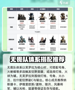纳斯婕卡,是无畏队的核心英雄,抽到就能以她为核心组队,强度有保障。泽菲,独特的被动搭配有移除增益队友会比较好,可以频繁给队友添加护盾,大招有无敌能确保队伍的生存。萨里伏尔,很强的单体输出,擅长对付单体boss,被动叠起来之后输出一骑绝尘。阿西莉亚,前排英雄坦度优秀,还能治疗队友,各场合下表现优秀,有群体免疫减益,在一些特定的副本中效果很好。