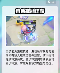 最后是它的三技能,也就是集结技能,该技能发动之后它会对全屏敌人,这里的全屏指的是视野范围内的敌人,会对敌人造成伤害,之后会让敌人进入到致盲状态,这大招可以连续释放两次,第一次释放完了后,过四秒可释放第二次。