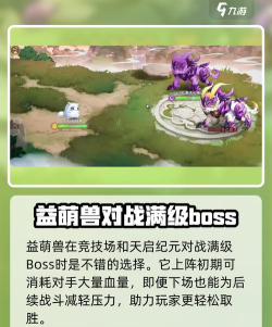 玩家拥有益萌兽后无论是在竞技场模式还是天启纪元对战满级boss的时候,选择益萌兽会是一个不错的选择,因为它能够在上阵初期帮助玩家消耗到对手足够的血量,就算是它下场了也能让后续的对战轻松很多。
