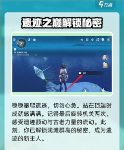 别急一步步稳稳地向上攀爬,不要太过于着急。终于当玩家站在遗迹的顶端,那种成就感简直难以言表。别忘了还有最后一步,旋转那神秘的机关两次。随着机关的缓缓转动,仿佛整个遗迹都随之轻轻颤动,一股古老而又神秘的力量在玩家周围流淌。这一刻玩家知道,玩家已经成功解锁了浅滩群岛的秘密,成为了这片遗迹的新主人。