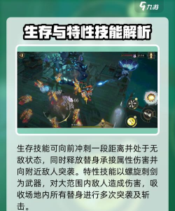 他的生存技在释放后,会向前方冲刺一段距离,对路径上的所有敌人造成伤害,冲刺的期间自身会处于无敌状态,该技能释放的时候还会在原地生成一个替身,这个替身会继承自身的一部分属性。