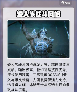 矮人这个种族比较严肃,同时也很坚毅,他们很擅长锻冶,喜欢喝酒,喜欢各种歌谣,对于自己的种族非常的忠诚,同时也对自己种族很有荣耀感,他们非常的团结,属性点方面比较偏向于力量,比较擅长战斗,拥有充足的力气。