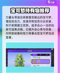 强力神器之一,该持有物拥有家攻击攻速,普攻命中后提高2%伤害的效果,从效果上来看,这也是一种适用于物攻类型宝可梦的持有物。