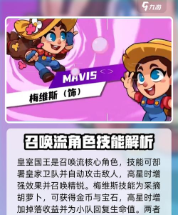 皇室国王是召唤流的核心角色,他的第一个技能可以在打开宝箱后可以部署皇家卫队,皇家卫队会对周边的敌人自动进行攻击,2星的时候会部署新的皇家卫队,3星则能给过往提供一个额外的法术,这个法术施展后会召唤一个皇家卫队精锐。