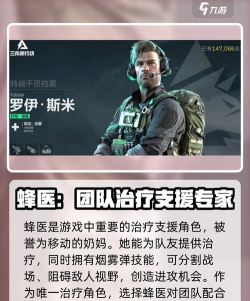 罗伊·斯米:是不可以被忽视的一大角色,拥有众多的优势,主要的核心特点是可以拯救队员,让所有的队员能迅速的恢复血量。另外,如果在我方成员受到威胁时,还可以释放烟雾道具,达到遮掩敌方视线的作用。