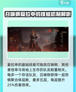 在游戏中,作为召唤师角色,夏拉申是一个不错的选择,其基础技能主要就是施放召唤物,并且每一个召唤物的基础攻击倍率和场地上生存的队友数量是息息相关的,场地上每生存一个队友,各类召唤物都能获得一层的恐惧聚合体层数,该层数最多能叠加到第五层,并且每一层都能够增加25%的伤害倍率。