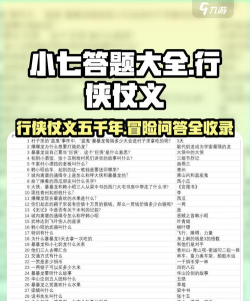 以上就是关于行侠仗义五千年小七答题大全的分享,相信很多玩家看到之后,都会对这个小七大冒险会有所了解,那么赶紧进入游戏体验一下吧。更多关于这游戏的攻略,可以关注九游APP。