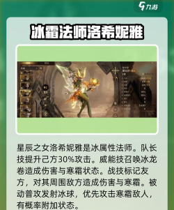 星辰之女洛希妮雅,作为冰属性法师,其强大的能力自然也是毋庸置疑的,技能方面,队长技可在所有的战斗中,提升己方目标30%的攻击,而威能技则是在指定地点召唤持续6秒的冰龙卷,每秒对范围内的敌方目标造成冰冻伤害,更是有100%的概率施加寒霜状态,持续5秒,战技的效果是标记一个友方目标,持续6秒,被标记的目标每1.5秒会对其周围的敌方造成冷冻伤害,并有100%的概率施加寒霜状态,持续5秒,被动的话就是普攻的时候会在敌方发射弹跳的冰球,并且命中的话就会有冷冻伤害,更有75%的几率对其施加寒霜,成功的话,效果就能有10秒之多,关键是这个最多能够弹跳2次,还会优先去选择寒霜状态的敌人进行攻击。