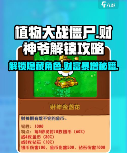 在深入解锁攻略之前,首先需要了解财神金盏花的特点。作为一款特别的植物,财神金盏花每隔五秒钟就能洒出一些钱币进行攻击。这些钱币不仅能对僵尸造成伤害,还能为玩家带来额外的金币收入。具体而言: