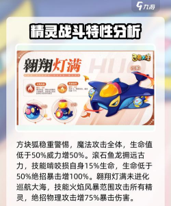 翱翔灯满未进化前一年四季都在大海中巡航,为大海指明方向,进化后拥有了翅膀可以在空中遨游,它的技能火焰风暴会释放出大范围的火焰旋风,攻击场上包括自身在内的所有精灵,它的绝招是物理攻击,使用时会增加自身75%的暴击伤害。