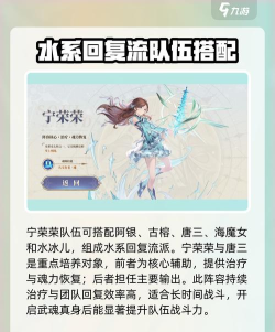 宁荣荣的队伍搭配也有几种流派可以参考,这里介绍一个主打水系回复流的队伍:宁荣荣、阿银、古榕、唐三、海魔女和水冰儿组成的队伍,以宁荣荣和唐三为重点培养对象。宁荣荣作为队伍中的核心辅助,负责治疗与魂力恢复;而唐三则凭借其卓越的输出能力,成为队伍中的主要攻击手。这套阵容的核心优势在于强大的持续治疗能力和团队回复效率,特别适合长时间的战斗或需要稳定输出的场合。宁荣荣作为队伍的核心辅助角色,她的治疗和魂力恢复能力对于保持队伍持久战力至关重要。尤其是在开启武魂真身后,宁荣荣不仅能大幅度减少自身受到的伤害,还能在每回合结束时为全队提供额外的伤害加成,极大地增强了队伍的综合战斗力。