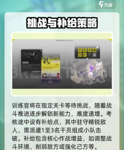 这些训练官会在指定关卡等着大家,而且随着战斗深入会解锁新的能力,也会变得越来越难对付。考核中也会设立一些补给点,点补给点里也有有一些精锐敌人,需要派1-3个干员组成小队完成击破。补给主要是一些用于核心作战的增益,诸如改变战斗环境,削弱对方的能力,增强己方能力等等。