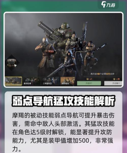 此外技能方面,其有着战术技武器超载以及主动技主绝对专注和被动技能弱点导航,这些技能使她在战斗中能快速的去叠加被动,提高自身的伤害输出,并在关键时刻发挥出巨大杀伤力,比如大家用他进行pvp时,摩羯就能去利用高暴击伤害特性来针对敌人进行打击。