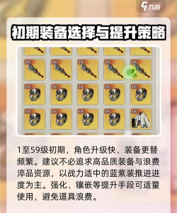 在1至59级的初期阶段,角色升级速度较快,装备的更替也非常频繁。这时不建议刻意去追求高品质装备,尤其不必大量使用珍贵的淬品资源。此时最主要的目标是通过不断更换战力较高的装备来快速推进游戏进度。无论装备是蓝色还是紫色,只要能够提供足够的战力即可。此外,强化、镶嵌等提升手段也可以根据需要适量使用,但避免过多浪费道具。